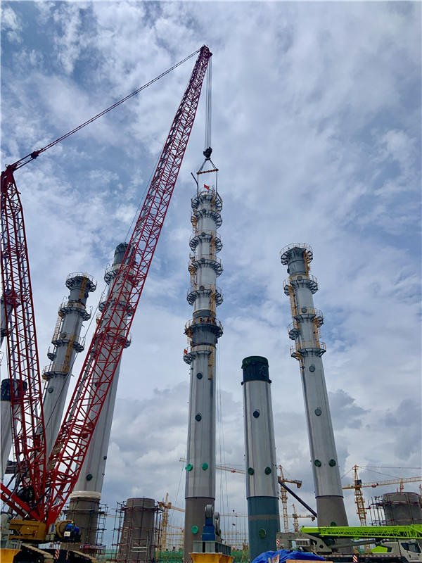 云南通威圓滿完成首座精餾塔封頂吊裝