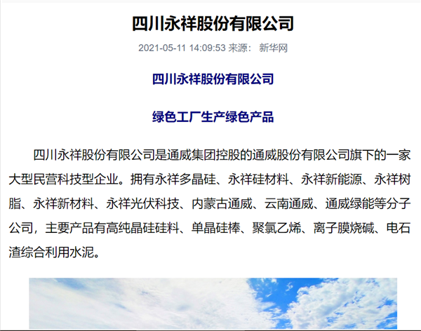 新華網(wǎng)聚焦永祥綠色高質(zhì)量發(fā)展