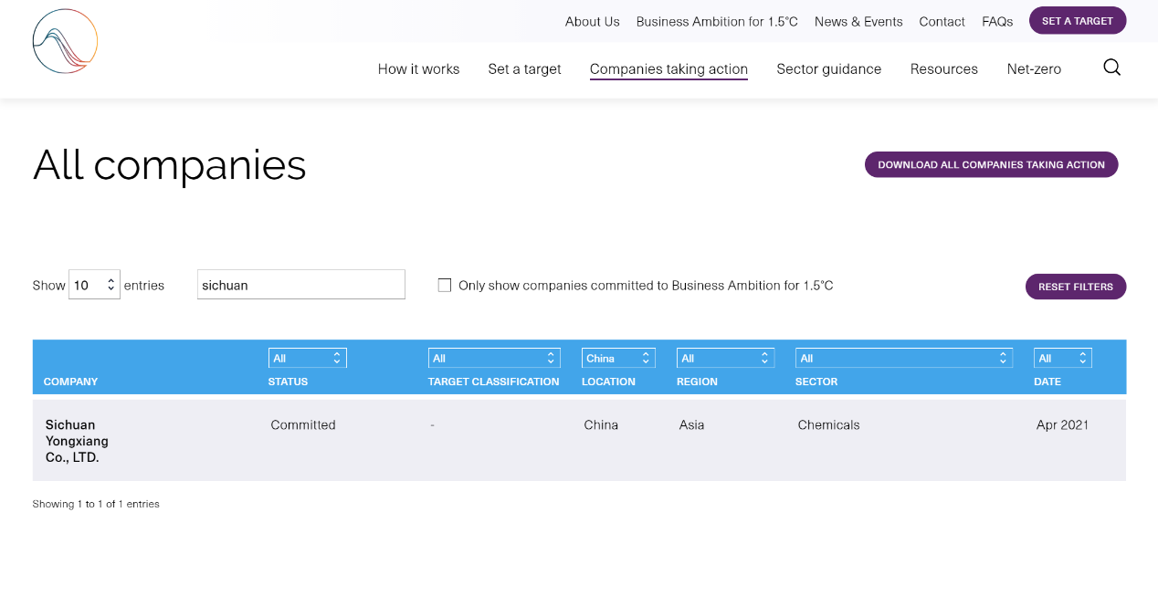永祥股份加入“科學碳目標”(SBTi)國際組織
