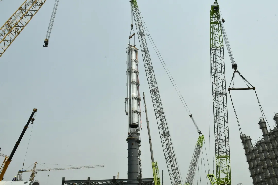 永祥新能源二期首臺精餾塔全段成功吊裝