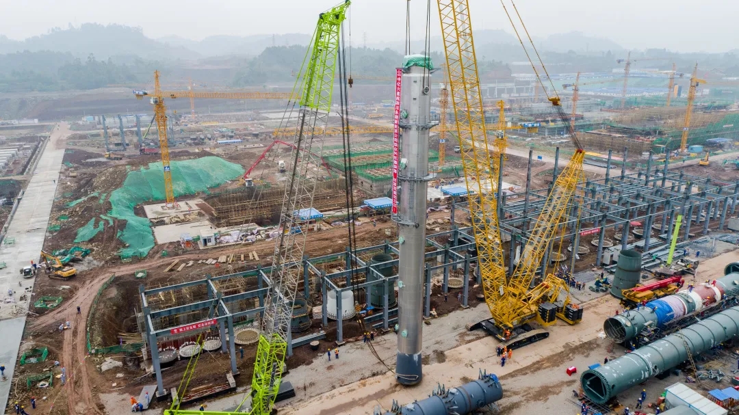 永祥新能源二期項目精餾塔首段成功吊裝
