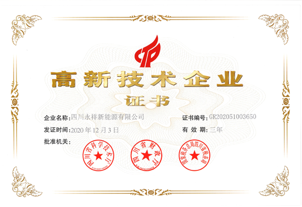 永祥新能源通過國家高新技術(shù)企業(yè)認(rèn)定