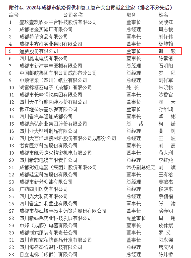 通威股份董事長謝毅獲評“成都市抗疫保供和復工復產突出貢獻企業家”