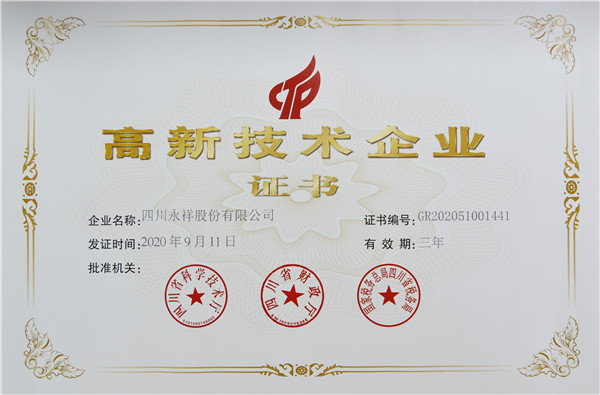 永祥股份“國家高新技術(shù)企業(yè)”資質(zhì)換證成功完成