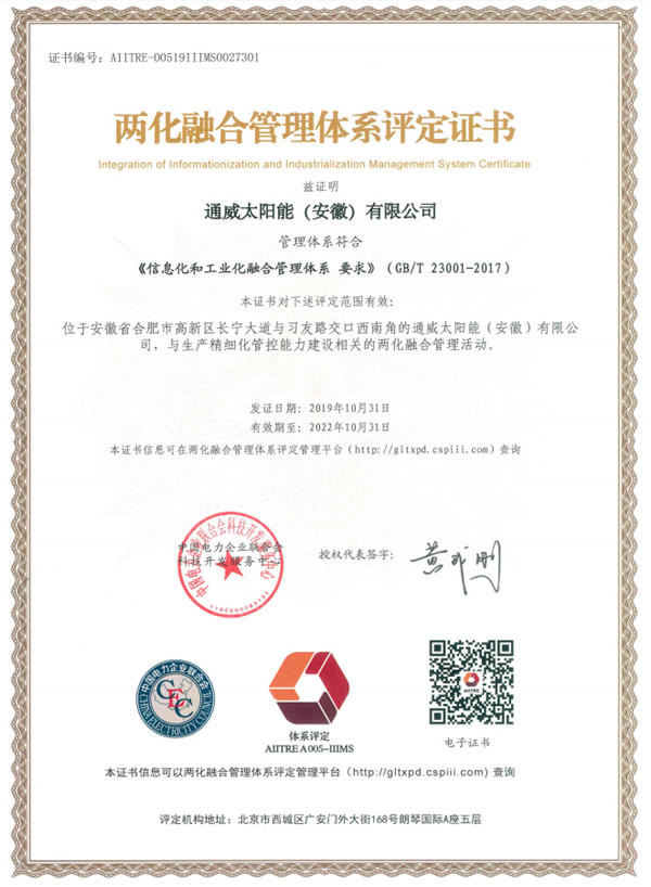 通威太陽能合肥基地順利通過兩化融合管理體系監(jiān)督審核