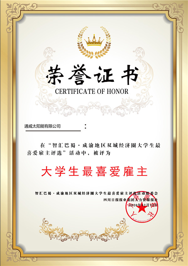 通威太陽能獲評“大學生最喜愛雇主”榮譽稱號