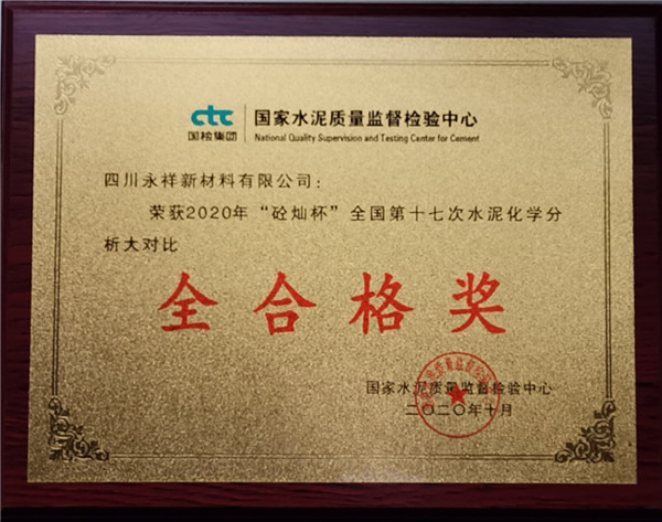 永祥新材料再次斬獲“全國水泥化學分析大對比全合格獎”