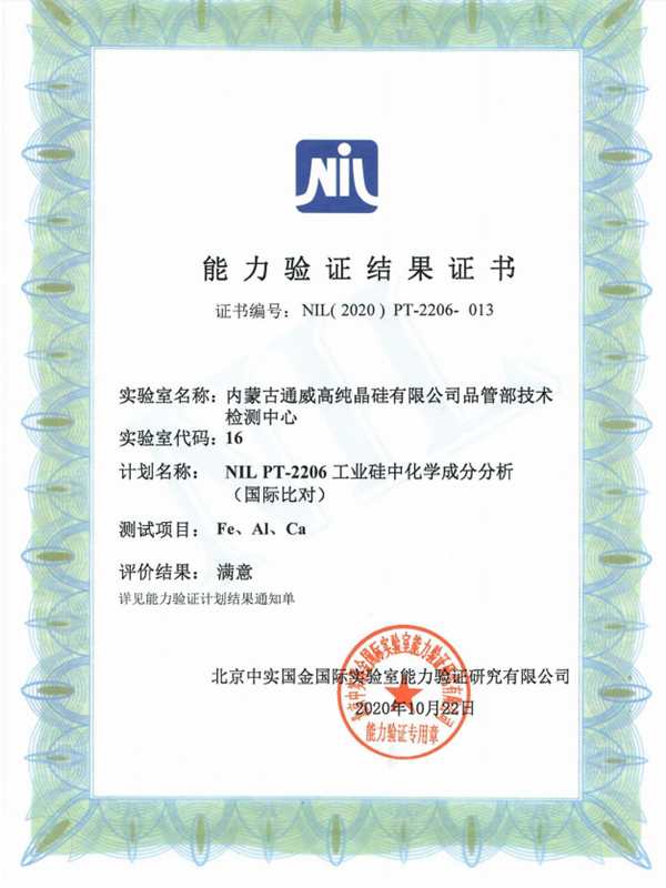 內蒙古通威分析檢測中心首次通過工業硅粉能力驗證