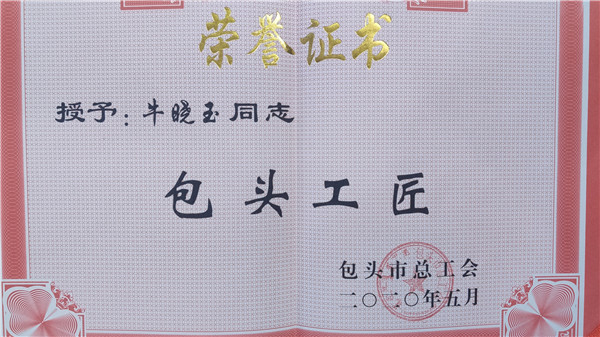 內蒙古通威員工榮獲“包頭工匠”榮譽稱號