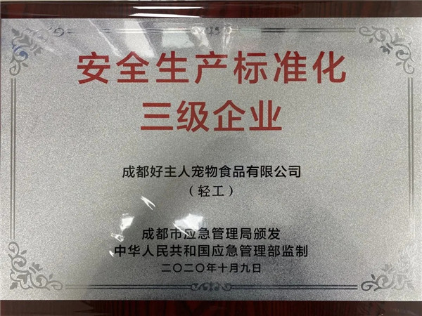 好主人公司榮獲“安全生產(chǎn)標(biāo)準(zhǔn)化三級企業(yè)”證書