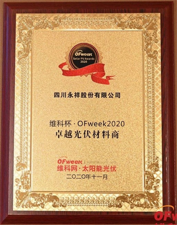 永祥股份榮獲“維科杯·OFweek 2020卓越光伏材料商”獎