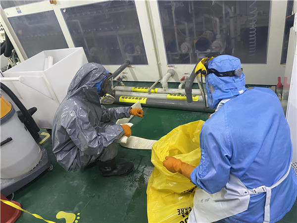 通威太陽能合肥公司電池一廠開展清洗工序酸液泄漏應急處理演練