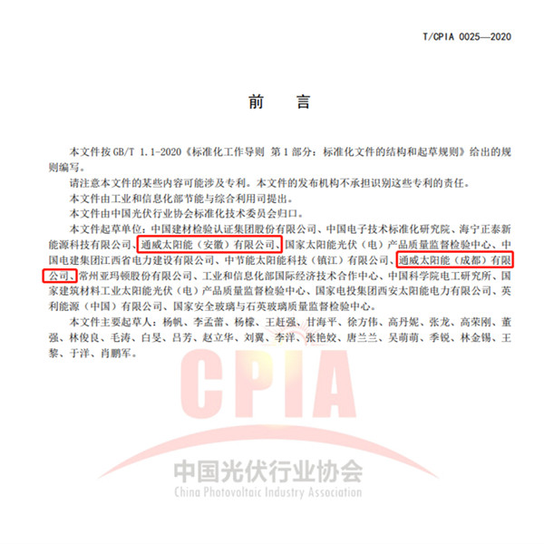 勇擔行業重任,通威太陽能參與制定兩項團體標準公開發布