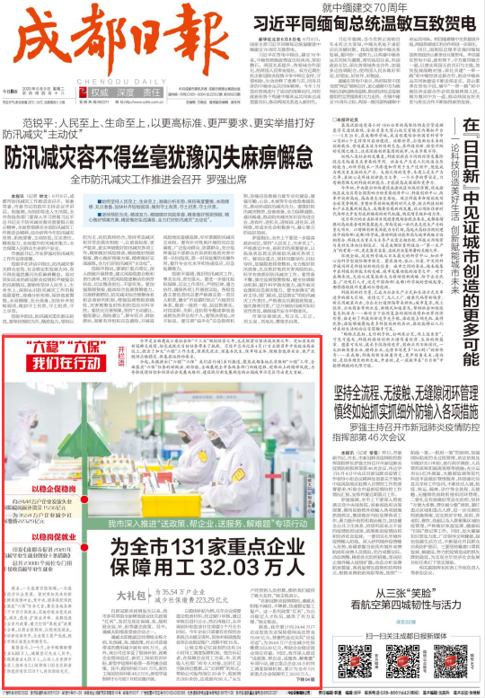 通威太陽能獲《成都日報》頭版聚焦