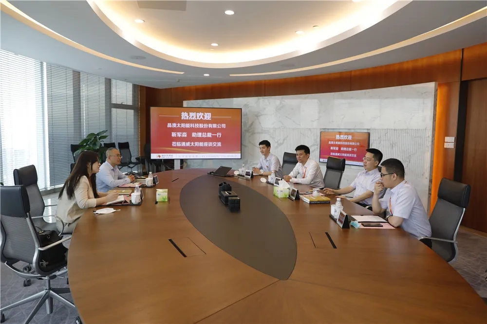 晶澳助理總裁靳軍淼一行蒞臨通威太陽能座談交流