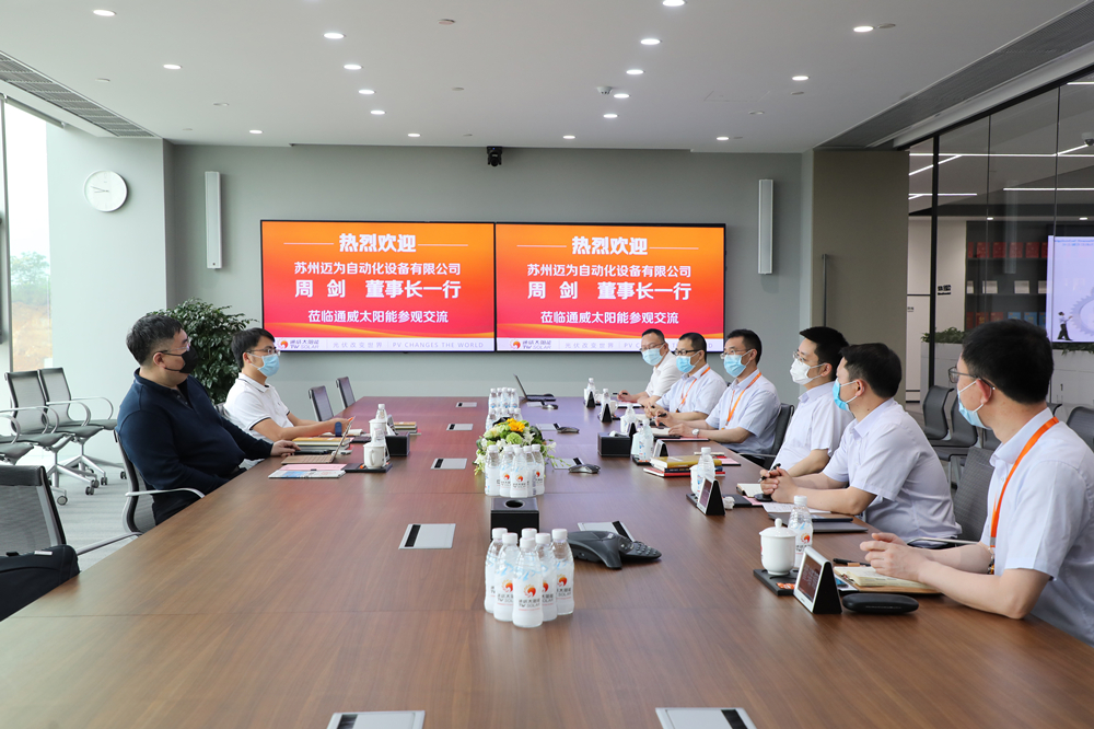 蘇州邁為自動化設(shè)備有限公司董事長周劍蒞臨通威太陽能參觀交流