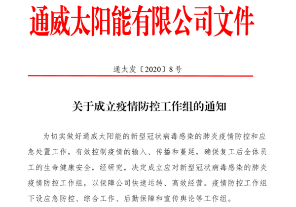 高效戰疫情,通威太陽能在行動!