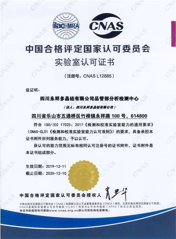 永祥多晶硅分析檢測中心獲CNAS實驗室國家認可
