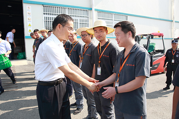 合肥高新區(qū)管委會(huì)宋道軍主任一行蒞臨通威太陽能開展“夏日高溫送清涼”慰問活動(dòng)