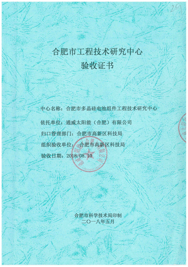 通威太陽能合肥公司順利通過市級工程技術(shù)研究中心驗(yàn)收