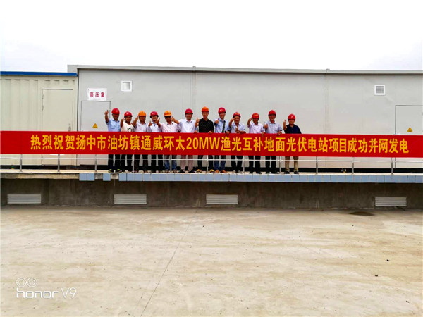 江蘇揚中市通威環太“漁光一體”(三期20MW)項目成功并網