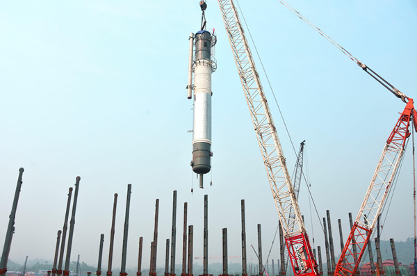永祥股份樂(lè)山高純晶硅項(xiàng)目首節(jié)精餾塔順利完成吊裝