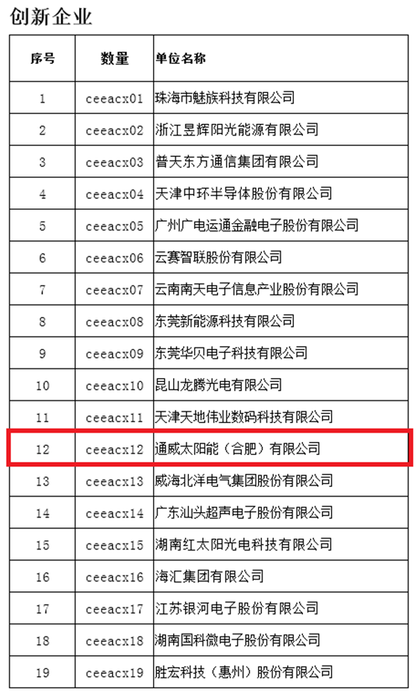 通威太陽能(合肥)有限公司入列2017全國電子信息行業(yè)優(yōu)秀企業(yè)公示榜單