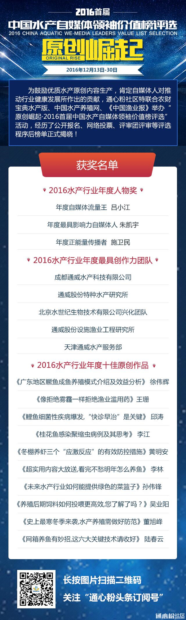 “ 2016原創崛起·首屆中國水產自媒體領袖價值榜評選”圓滿落幕