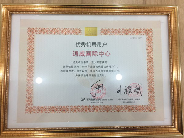 通威國際中心喜獲“年度遠大優(yōu)秀機房用戶”榮譽稱號