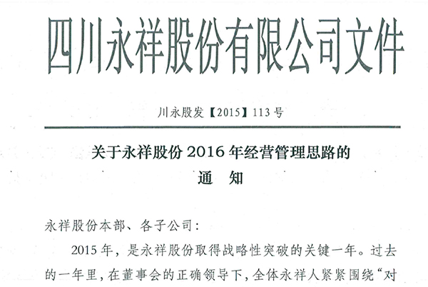 永祥股份頒布《2016年經營管理思路通知》