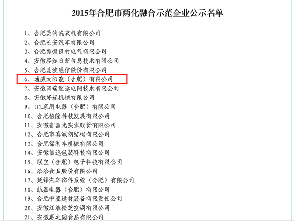 通威太陽能(合肥)公司獲“2015合肥市兩化融合示范企業”稱號