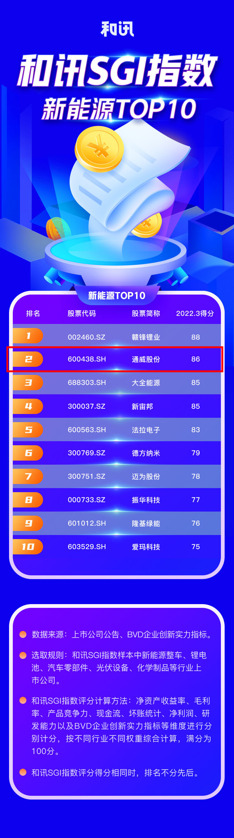 和訊SGI·2022第一季度新能源TOP10榜單發布,通威位列前三