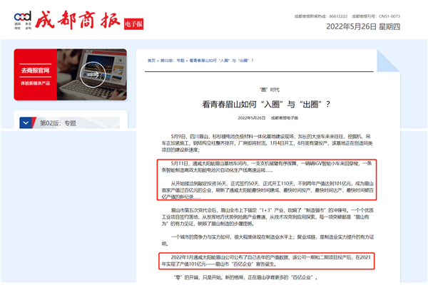 成都商報聚焦通威太陽能眉山基地助力眉山聚力制造強市