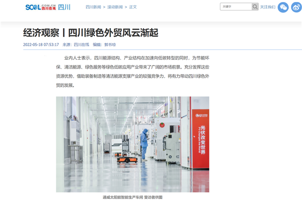 四川在線聚焦通威太能助力四川綠色外貿發展