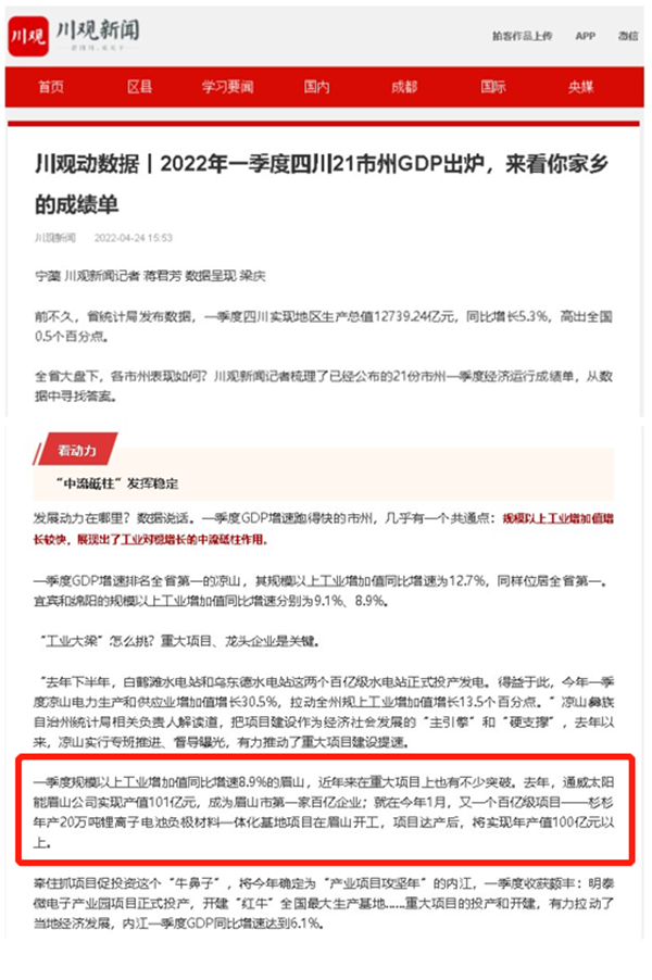 川觀新聞、紅星新聞等媒體聚焦通威太陽能高質量發展