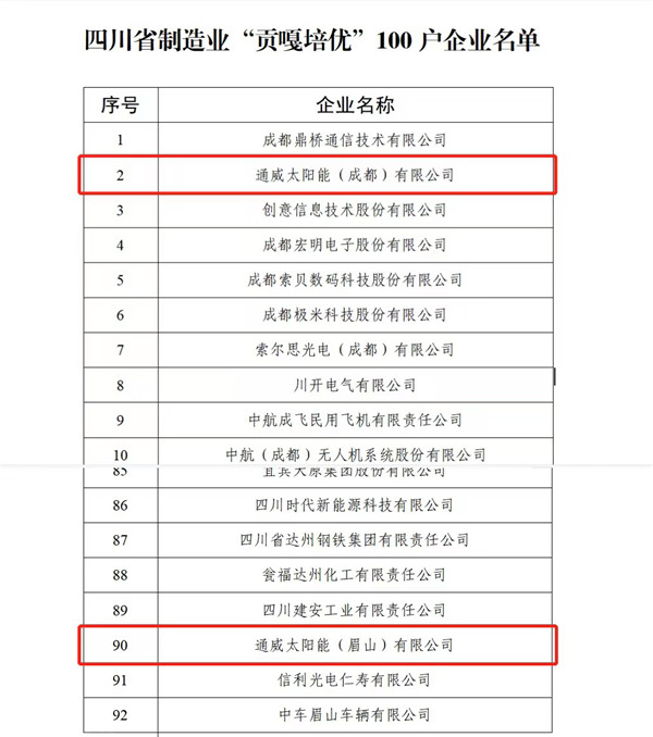 四川省“貢嘎培優”企業名單正式公布通威太陽能雙流、眉山基地成功上榜