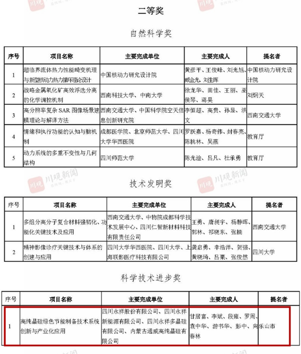 永祥股份榮獲四川省科學技術進步獎二等獎