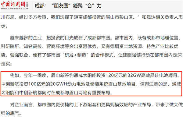 中國新聞網、中國經濟網、紅星新聞聚焦通威太陽能眉山基地助力成渝雙城經濟圈發展