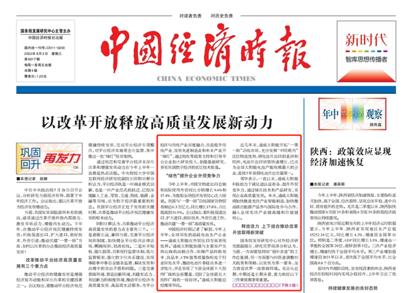 中國經濟時報:頭版頭條聚焦通威太陽能外貿出口優異表現