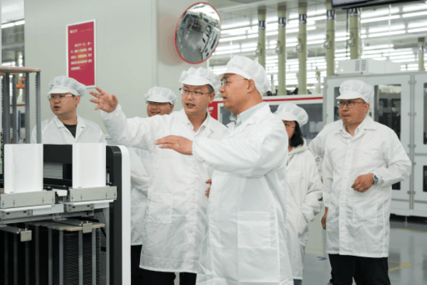 在徐總的陪同下,調研組一行首先參觀了成都公司電池六廠生產車間,對車間高度自動化、智能化的生產線進行深入了解,并對通威的先進生產技術和產業布局給予高度評價。