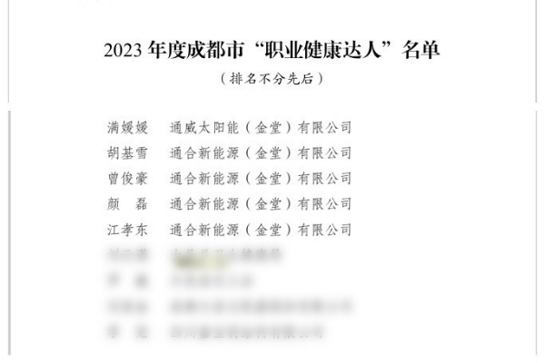 通威太陽能多名員工代表榮獲2023年度成都市“職業(yè)健康達人”榮譽稱號