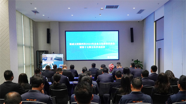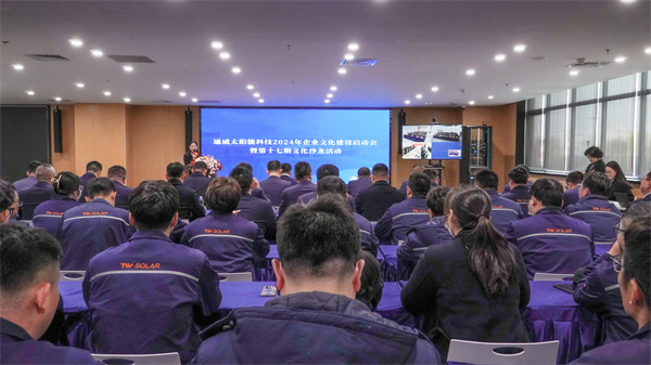 本次活動(dòng)以全體參會(huì)人員起立,齊唱《通威之歌》拉開(kāi)序幕。隨后播放主題VCR,回顧通威發(fā)展,乘時(shí)代東風(fēng)能源轉(zhuǎn)型,面臨行業(yè)寒冬戒驕戒躁,穩(wěn)扎穩(wěn)打,苦練內(nèi)功,夯實(shí)基本功,增強(qiáng)競(jìng)爭(zhēng)力,共度寒冬,展望未來(lái)。隨后,光伏學(xué)習(xí)中心對(duì)2024年通威太陽(yáng)能科技企業(yè)文化建設(shè)方案進(jìn)行宣貫,通威太陽(yáng)能科技將深度聚焦集團(tuán)企業(yè)文化“戒驕戒躁,穿越寒冬”主題,積極響應(yīng)六大主線活動(dòng),成立企業(yè)文化建設(shè)專項(xiàng)工作組,從方法論出發(fā),運(yùn)用機(jī)制保障,通過(guò)文化宣傳賦能、特色文化欄目打造文化傳播矩陣;通過(guò)學(xué)習(xí)植入、核心價(jià)值觀牽引,從“頂層設(shè)計(jì)”到“具體實(shí)踐”,從“宏大儀式”到“微觀感受”將文化工作全面落地。