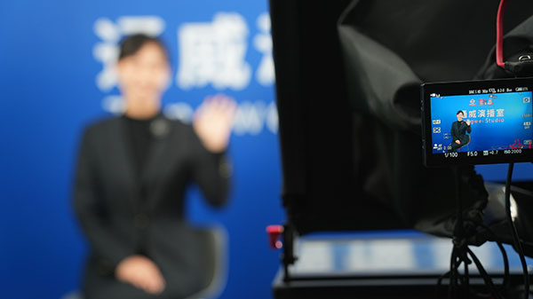 主播在全新的通威演播室錄制節目