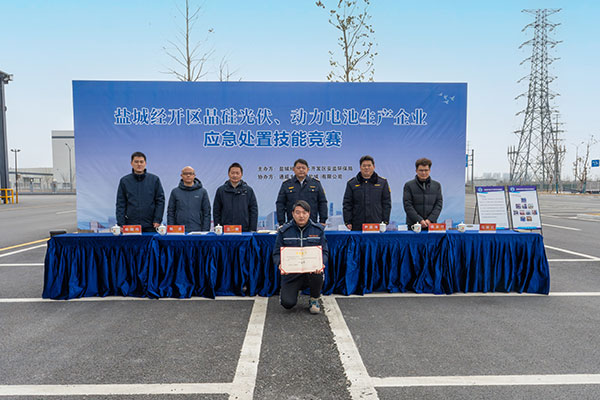 近日,由鹽城經濟技術開發區安監環保局主辦,通威太陽能科技鹽城基地協辦的應急處置技能競賽在鹽城基地舉行。本次比賽由經濟技術開發區晶硅光伏和動力電池22家生產企業共計100余人參賽。