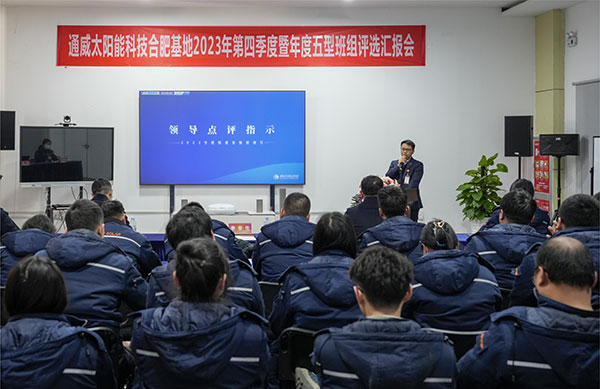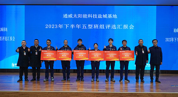 為加強優秀五型班組建設,打好2023年收官戰,提升一線班組“技能型、效益型、管理型、創新型、和諧型”的建設能力及基礎管理水平,充分發揮“五型”班組團隊精神,營造“比、學、趕、幫、超”的文化氛圍,同時總結經驗,樹立典型,提高員工工作積極性,近日,通威太陽能科技各基地組織開展了2023年第四季度暨年度五型班組評比表彰活動。來自各基地生產體系部門負責人及班組代表共計100余人參與活動。