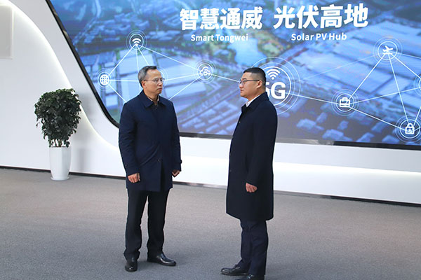 金堂縣委副書記、淮州新城管委會主任羅勇一行 蒞臨通威太陽能金堂基地慰問交流