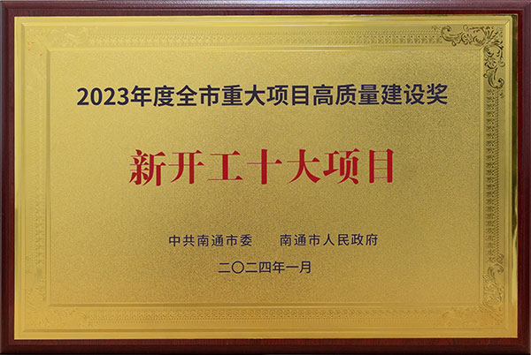 近日,通威太陽能科技南通基地憑借2023年度取得的卓越成績,被授予南通市2023年度全市重大項目高質(zhì)量建設(shè)獎“新開工十大項目”榮譽(yù)。