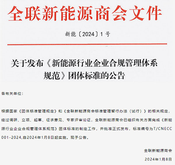 通威太陽能參編《新能源行業企業合規管理體系規范》團體標準