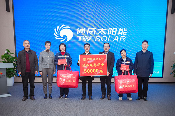 通過實地調研,苗勇副主席對通威太陽能文化建設方面和工會工作扎實有效開展給予了充分肯定和高度評價。希望企業能繼續堅持以人為本,關愛職工成長。未來,通威太陽能彭山基地將繼續發揮工會力量作為黨聯系職工群眾的橋梁和紐帶作用,努力為職工排憂解難,維護好職工權益,為眉山經濟社會高質量發展作出應有的貢獻。