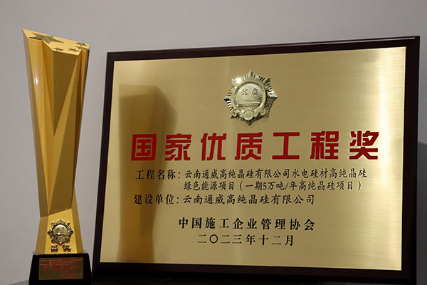 云南通威一期5萬噸/年高純晶硅項目榮獲2022-2023年度國家優(yōu)質工程獎